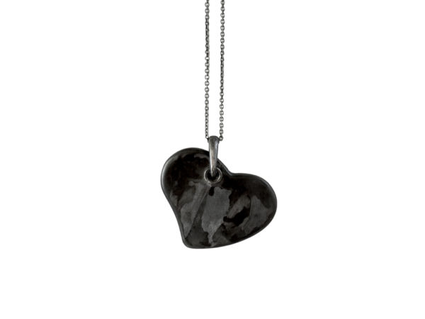 Collana in argento 925 brunito con Cuore in fibra di carbonio, realizzata a mano in Italia con tecnologia aeronautica ed inserti in argento 925