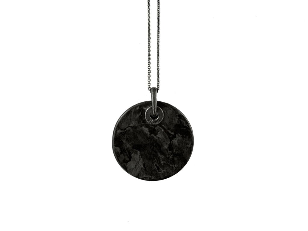 Collana in argento 925 brunito con Sole in fibra di carbonio, realizzata a mano in Italia con tecnologia aeronautica ed inserti in argento 925